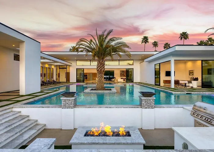 Podrás llegar al aeropuerto Internacional de Palm Springs en 20 minutos en coche, y hay atracciones naturales como Second Street Park a unos 10 minutos en coche. The River at Rancho Mirage se ubica a una distancia de 4 km de la villa Rancho Mirage Oasis W Pool Hot Tub Bocce Putting Green Firepit y Children's Discovery Museum está a unos 3 km. Esta villa es un buen punto de partida para las atracciones deportivas de Rancho Mirage, entre las cuales The Westin Mission Hills Resort Pete Dye Course, que se encuentra a unos 25 minutos a pie.